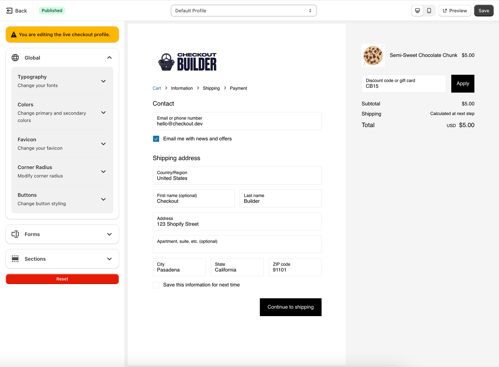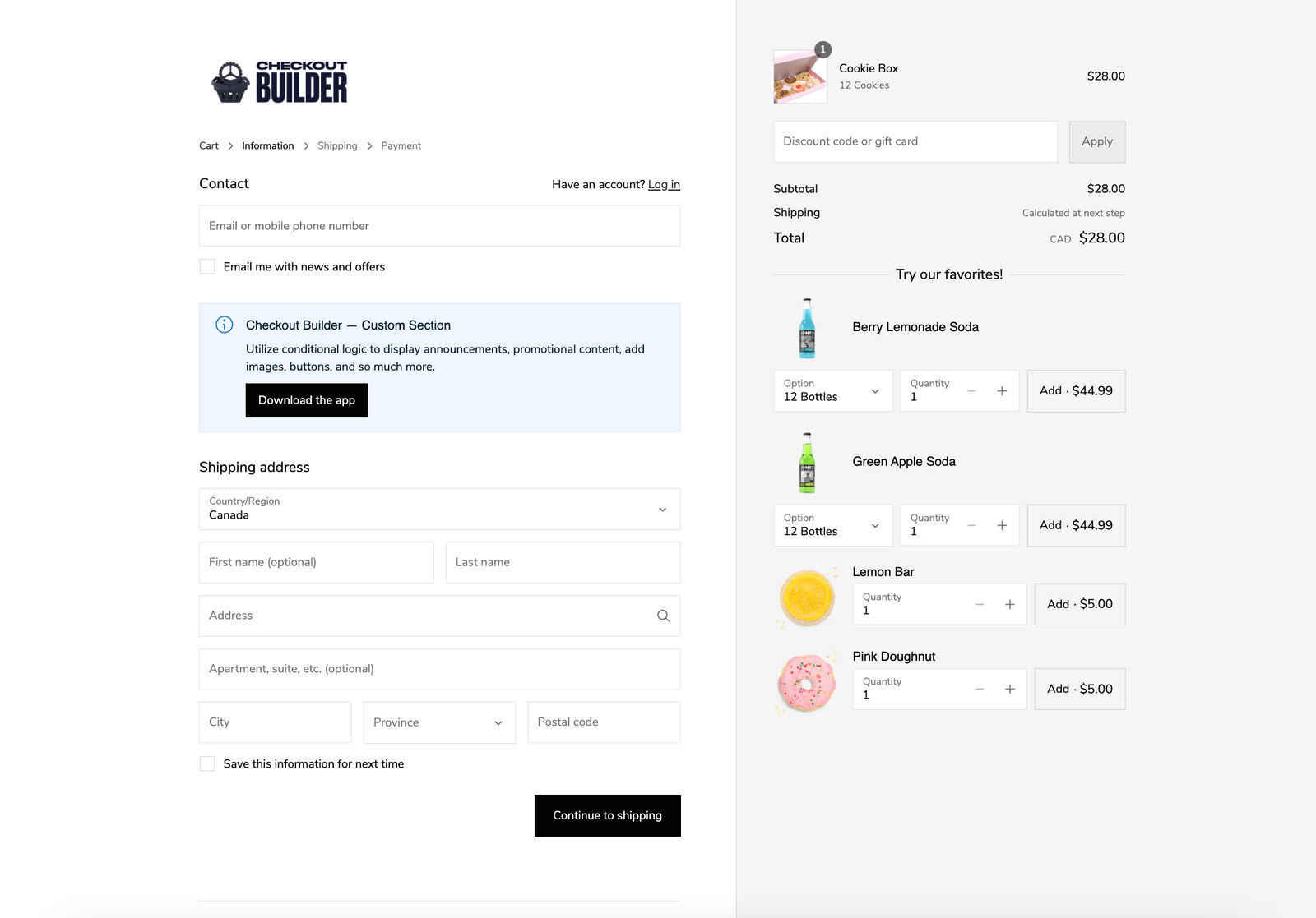 Customize various elements beyond the capabilities of the checkout editor. Create a beautiful yet familiar checkout experience for your customer that match your branding guidelines.